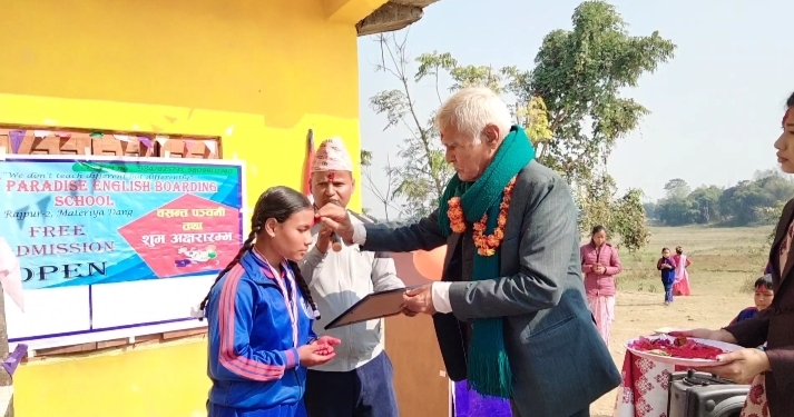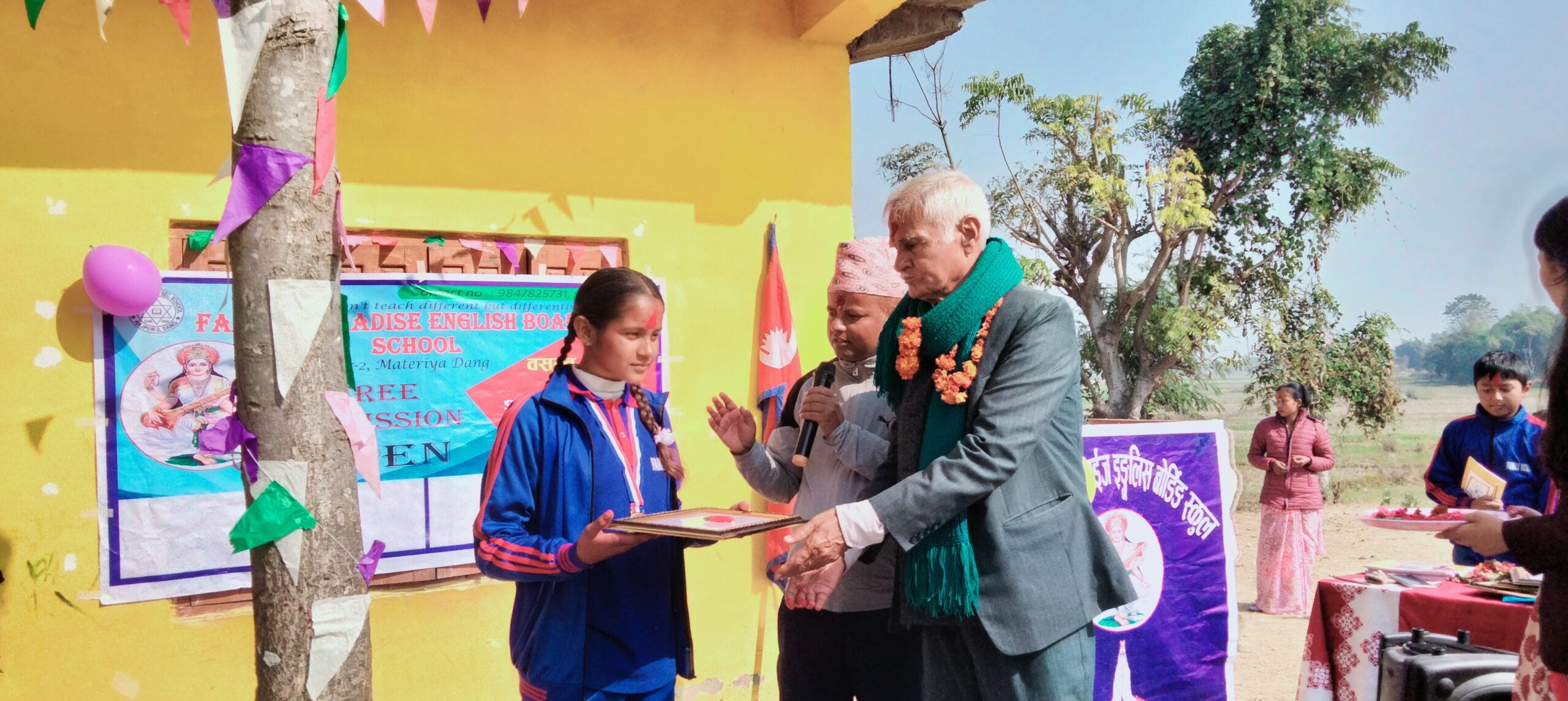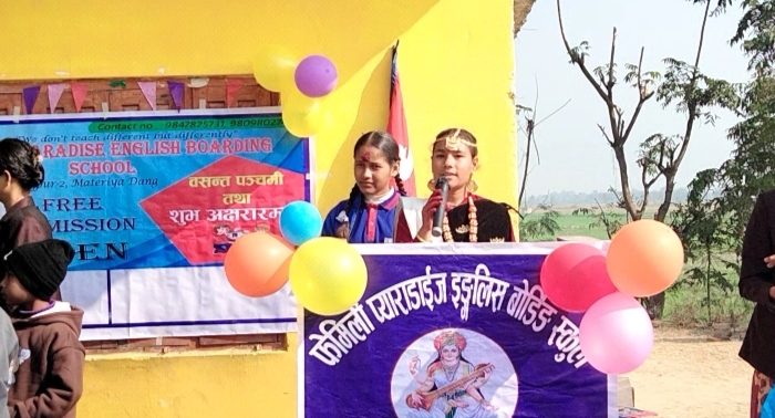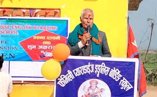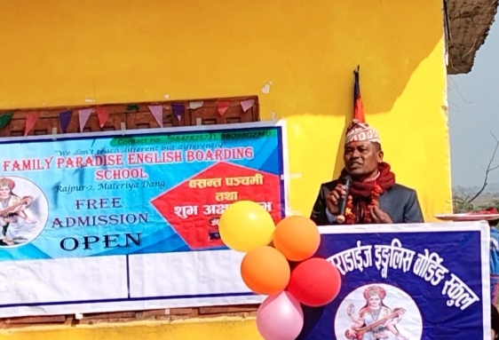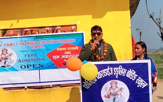 दाङ देउखुरी /राजपुर। राजपुर–२, मटेरीया दाङस्थित फेमिली प्याराडाईज इङ्लिस बोर्डिङ स्कुलमा वसन्त पञ्चमीको अवसरमा सरस्वती पूजा, अक्षरारम्भ, सम्मान तथा मोटिभेसन कार्यक्रम भव्य रूपमा सम्पन्न भएको छ।