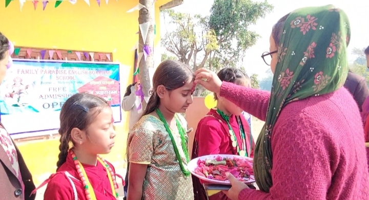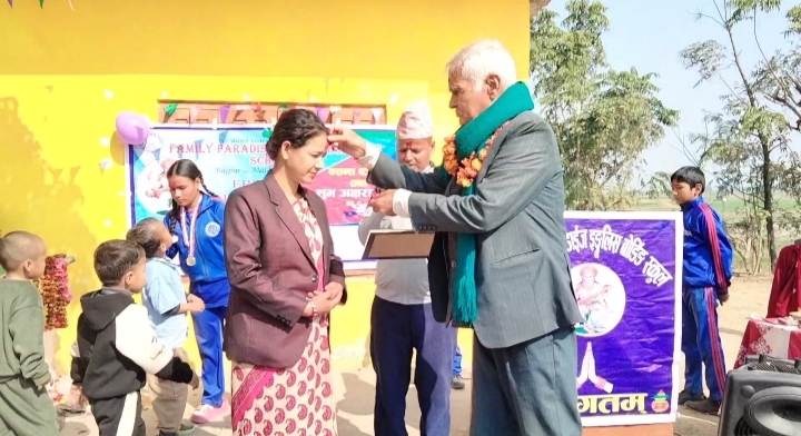 फेमिली प्याराडाईज स्कुलका छात्रा प्रतिज्ञा यादव र आशिका बिकद्वारा संचालित कार्यक्रममा प्रमुख अतिथी देवीराम सुनारले फेमिली स्कुलले राम्रो कार्य गरिरहेको र आगामी दिनमा अझ प्रगती गर्नुपर्ने बताए ।