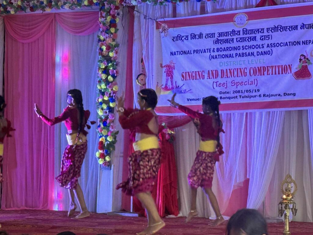 भाद्र -१९,२०८१ एनप्याब्सन दाङको आयोजनामा जिल्ला स्तरीय गायन र नृत्य प्रतियोगिता सम्पन्न भएको छ । हिन्दु महिलाहरुको महान पर्व हरितालिका तीजको अवसर पारेर गायन र